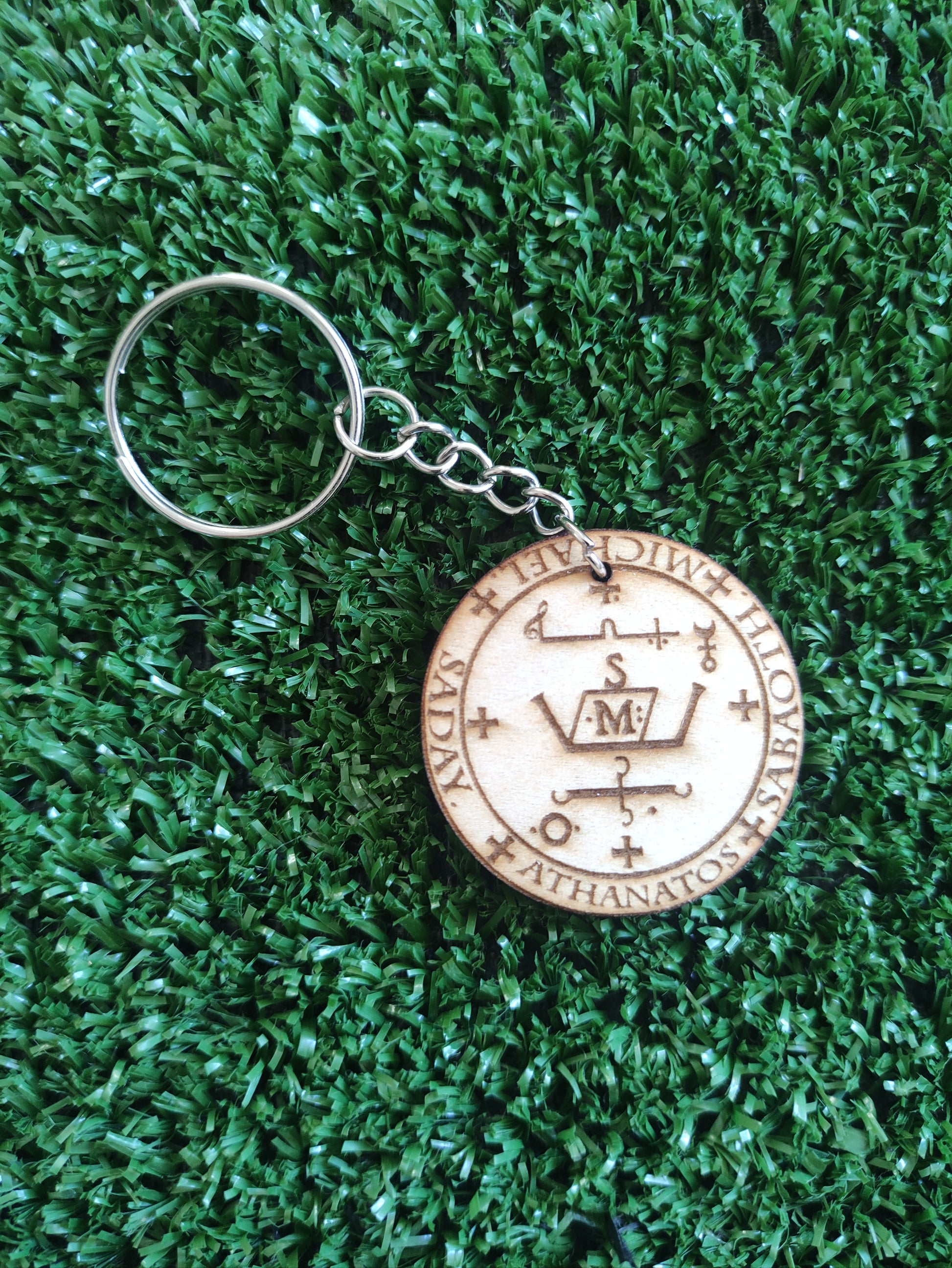 Este llavero en madera con el sello del Arcángel Miguel es un poderoso amuleto de protección, fuerza y guía espiritual. El sello sagrado del Arcángel Miguel simboliza la defensa contra energías negativas, el coraje interior y la conexión con la justicia divina.