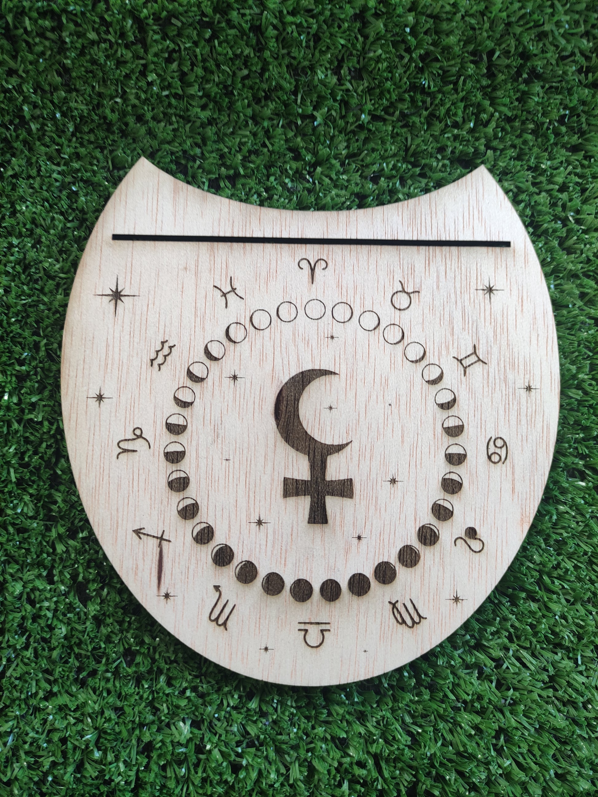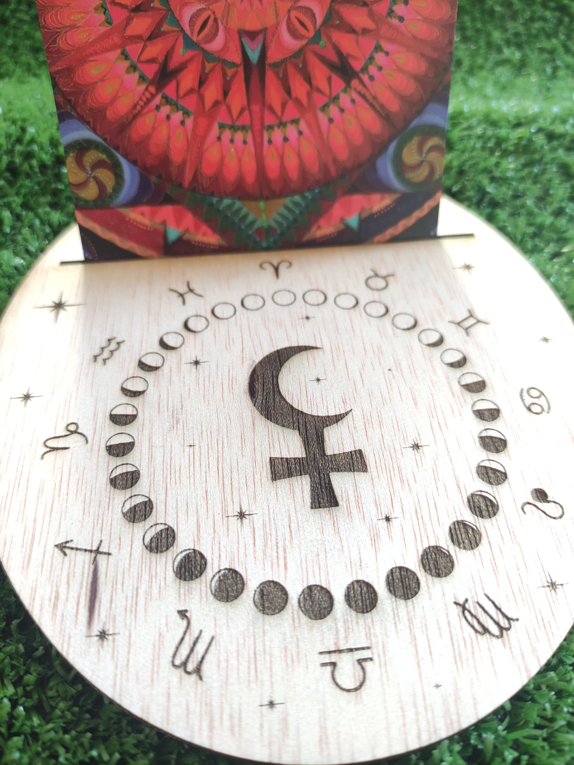 Su diseño incluye fases lunares y signos zodiacales, creando un portal estético y simbólico para tus cartas, rituales o intenciones diarias.